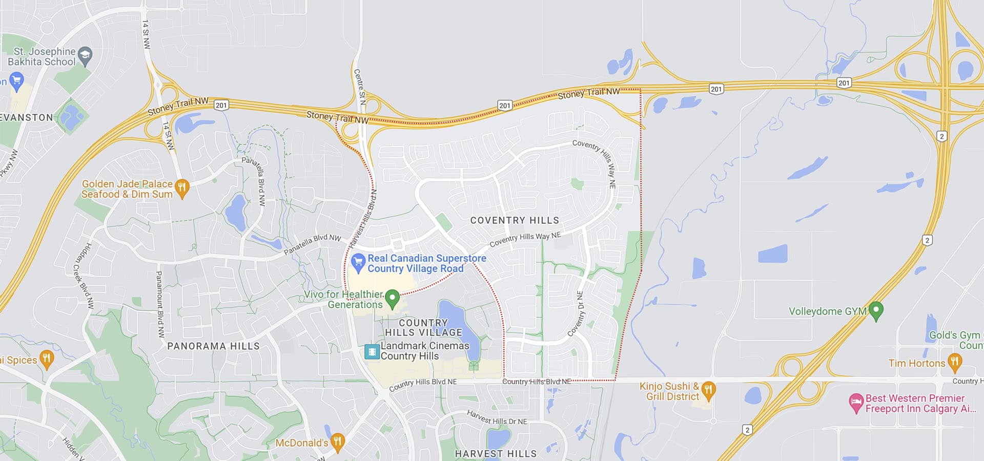 Coventry Hills is located by Stoney Trail north and Country Hills Boulevard south. It comprises many types of homes, including single-family homes, apartments, townhomes, and attached and detached homes. From traditional layouts with modern interiors to multi-level floor plans with contemporary styles, there are truly viable options for everyone in this neighbourhood!