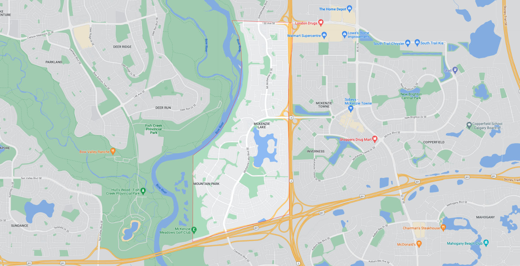 Bordered by Fish Creek Park to the west, 130th Ave SE to the north, Deerfoot Trail to the easy and Alberta Highway 22X to the south, residents have quick access to McLeod Trail and Deerfoot Highway and to 2 LRT stations with the LRT trip to the downtown area taking around 35 minutes.