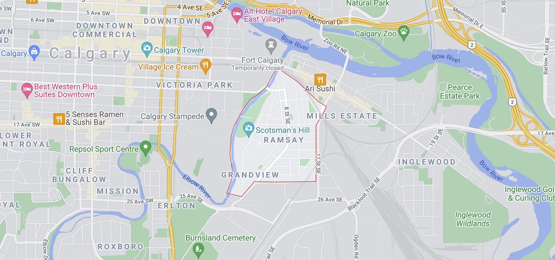 Ramsay is also home to one of Calgary's most popular lookout points, Scotsman's Hill, which provides excellent views of the city and the famous Calgary Stampede fireworks. In Ramsay, you'll enjoy a relaxed lifestyle just a short distance away from the hustle of downtown Calgary! Not only are there great parks and playgrounds located nearby, but with close access to the Bow River, it's the perfect space for those who love to be outdoors.