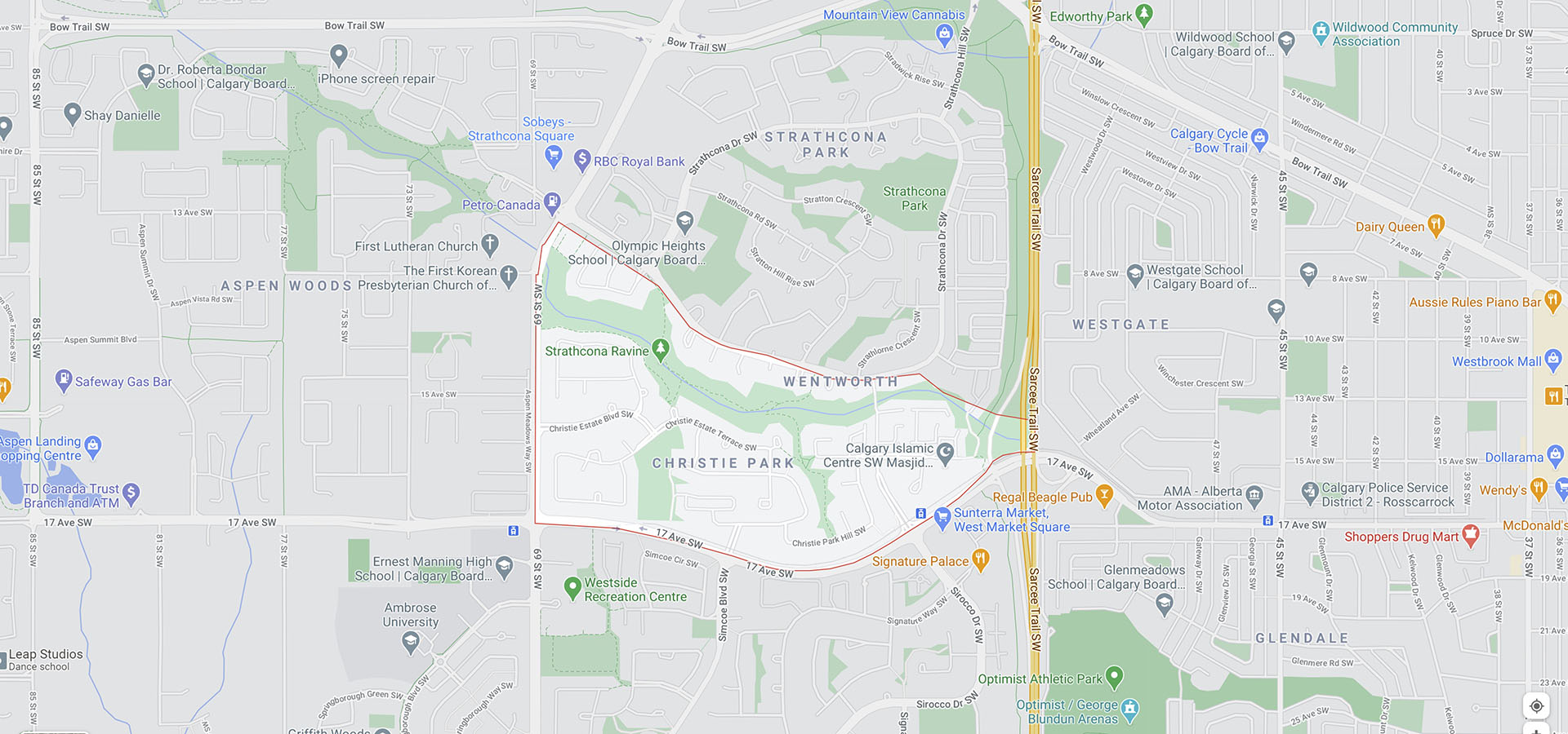 Live in luxury in Christie Park! This beautiful upscale community is nestled within the southwest quadrant of the city and is bordered by 17 Avenue to the south and Strathcona Drive to the north. With communities such as Strathcona Park, Aspen Woods, Springbank Hill and West Hillhurst only a short drive away, you’ll have access to dozens of amazing restaurants, the Westhills shopping area, and the Westside Recreation Centre! Whether you drive or rely on public transportation, the Sirocco CTrain Station is located within Christie Park, giving residents easy access to downtown Calgary and more. Located on a prominent highland, Christie Park properties provide outstanding city views of Calgary and the Elbow and Bow River valley. While it is a relatively new neighbourhood, Christie Park shares ties with Strathcona Park and Aspen Woods, creating the perfect quiet, family-friendly setting. Filled with apartments, condominiums, detached and semi-detached single-family homes (bungalow and two-story form), this community offers a variety of exquisite homes