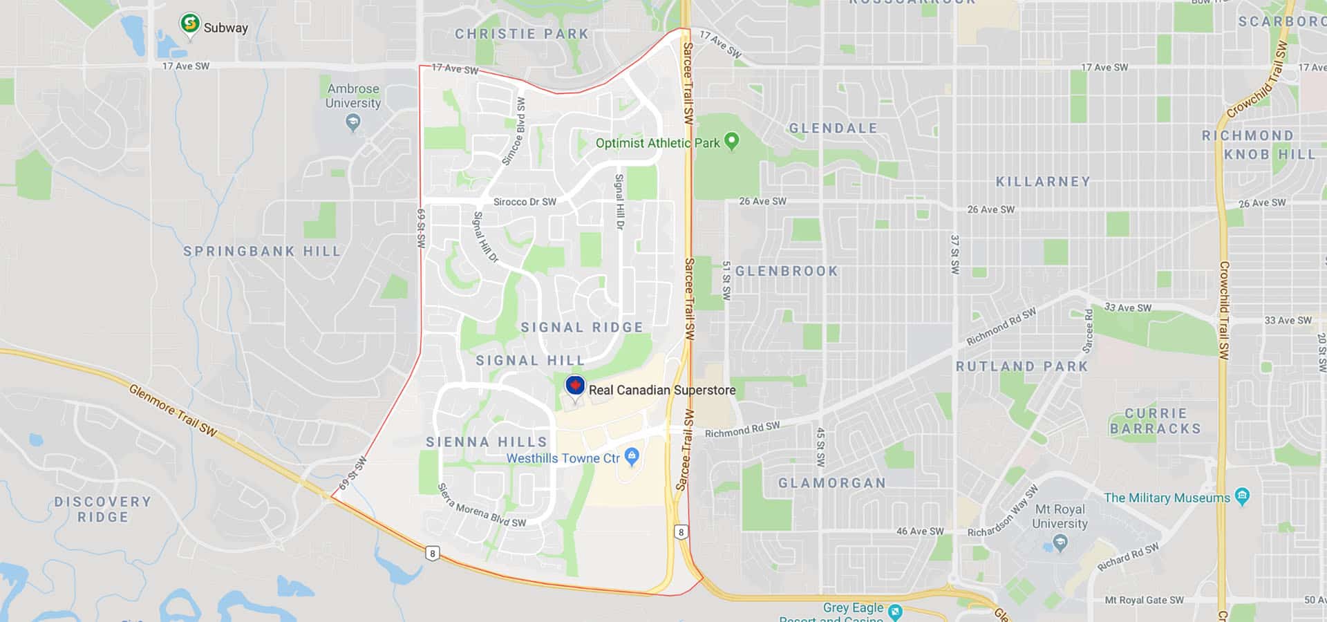 Signal Hill is a family oriented community with beautiful views of downtown, green spaces and large lots. It is bound by 17th Avenue to the North, Sarcee Trail to the East, the ridge of Battallion Park to the South and the community of Springbank and 69th Street SW to the West. Signal Hill is well known for its inner city location with easy access to Westhills shopping center, 17th Avenue, Westside Recreation Center, Elbow Springs Golf Course, Pinebrook Golf Course, Elbow River and some of the best elementary and junior high schools in the city. As a suburban haven with desirable amenities close by, this perfect neighbourhood is one of the most desirable inner city communities for young professionals, growing families and empty nesters.